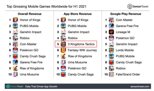 《三国志·战略版》的上线意味着游戏业务正式走入上升期的正轨。2019年9月20日,游戏的上线首次将阿里互娱抬进了SensorTower的手游厂商收入榜TOP20,并且阿里互娱在之后2年里上升并保持在TOP10。