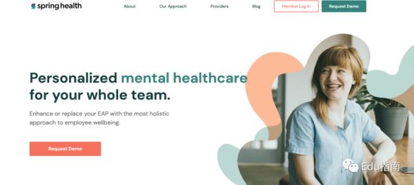 Spring Health ,当下主要面向雇主雇员,提供一种提供心理健康福利服务,包括在线治疗、咨询、辅导和自我指导练习。其服务作为员工援助计划 (EAP) 的补充或作为它们的完全替代品进行营销。