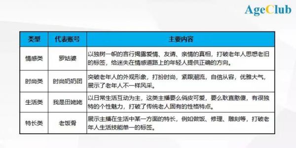 在这个阶段,银发网红已经呈现出初步多元化的趋势,在《马保国现象:卖门票一次赚82万,中老年网红离“个人IP变现”有多远?》一文里,AgeClub曾对主流银发网红做了大致分类:情感类、时尚类、生活类和特长类。