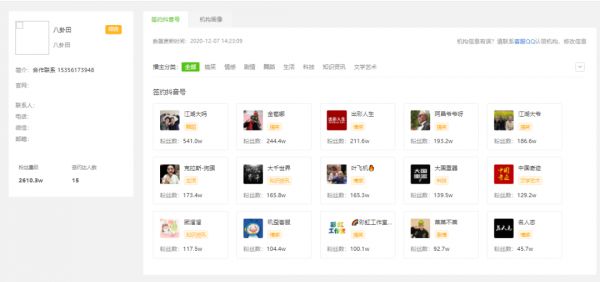 例如八卦田,飞瓜数据显示,八卦田共签约包含@阿昌爷爷呀在内的15个抖音账号,约有一半账号主体为银发网红,总粉丝量级为2610.3万。