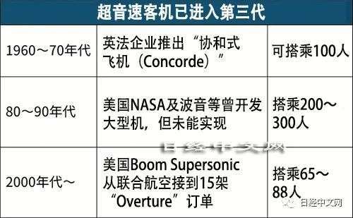据牧野介绍,1980年代到90年代,美国国家航空航天局(NASA)和波音等企业曾在一段时期积极开展过可乘坐200~300人的大型“第二代”超音速客机的开发。但由于声爆与机身体积成比例增大,最终未能实现。