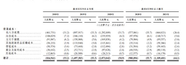 当然,收入依靠优质内容生产者,意味着每年也需要支付足够多的收入分成,保证内容质量以及合作的创作者不被其他平台挖走。