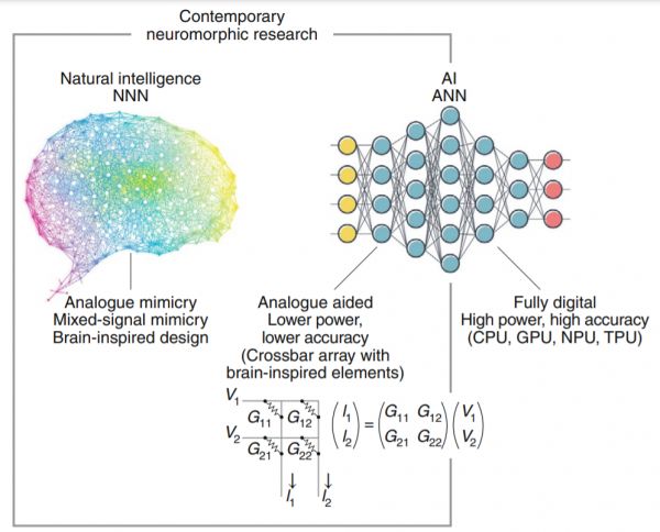 由于当前人类对神经元如何在大脑内部工作知之甚少,构建一个具有独特计算能力的神经网络电路从根本上受到了挑战。伴随着人工智能技术的发展,在CPU、GPU、NPU、TPU等数字处理器之外,研究人员开始推动模拟辅助功能的处理器,这类处理器在AI计算中的功耗更低。