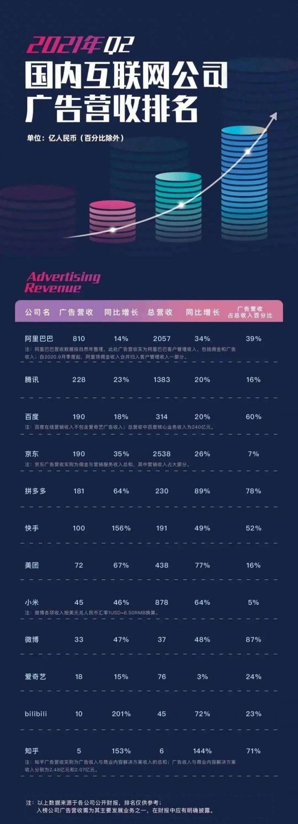 ▲TopMarketing统计的2021Q2国内互联网公司广告营收Top12