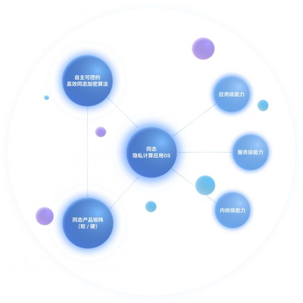「同态科技」的特点在于基于自主可控的高性能同态加密算法,致力于实现多方数据跨平台、跨领域连接与应用。具体针对数据共享分发阶段,公司通过“隐私计算一体机”硬件产品或安全沙箱形式完成加密操作的部署;在密文数据应用运算阶段,利用同态隐私计算应用OS,提供内核层、服务层、应用层的隐私计算能力输出,希望解决隐私计算需求与客户原有业务系统衔接兼容的问题。