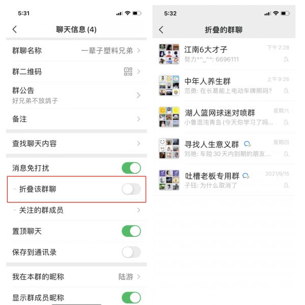 这些被折叠的群会被固定在聊天列表的固定位置,不会被新消息时刻顶起来。就算在群内使用@所有人的提醒,也无济于事,只会有一个未读消息的小红点。