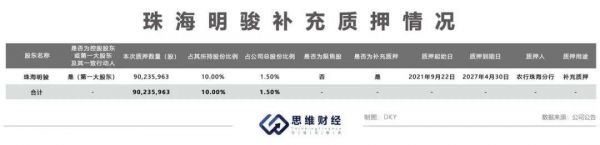 此前,珠海明骏有过两次股份质押。第一次始于2020年2月13日,珠海明骏将当期所持有的所有股份9.02亿股进行质押。第二次是将2026年到期的首次质押解除后,于2021年5月13日再次质押。此次解除原质押的所有股份,而后质押7.22亿股,占所持股份的80%。