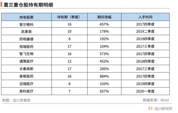 精选个股决定了赚什么钱,敢于重仓影响的是赚钱的多少,而持股周期的长短决定了是否能够真正赚到自己想赚到的那部分钱。葛兰的成功,还得益于长期持股。比如,葛兰连续16个季度重仓爱尔眼科,恒瑞医药、智飞生物、长春高新、泰格医药等个股持有周期也均超过3年。