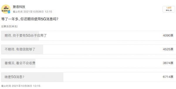 这距离三大运营商发布5G消息白皮书,宣布传统短信升级,已过去一年半之久。在新浪科技所做的一项微博调查中,只有27.2%的网友对5G消息表示期待。