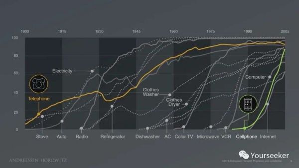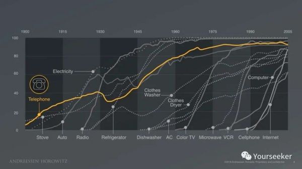 电话花了整整 5 年时间才打入美国 20% 家庭,花了整整 30 年才达到 40% 渗透率。