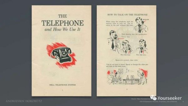 上图就是原因。它是贝尔电话系统的使用说明——包括如何握住电话,哪一侧朝向耳朵,哪一侧靠近嘴,以及如果有人打来,你应该打个招呼。