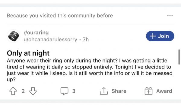 他们还有“因为你之前访问过这个社区”(Because you visited this community before)所以推荐你看看这些(r/ouraring ——有没有人对这个产品有什么想法?)。