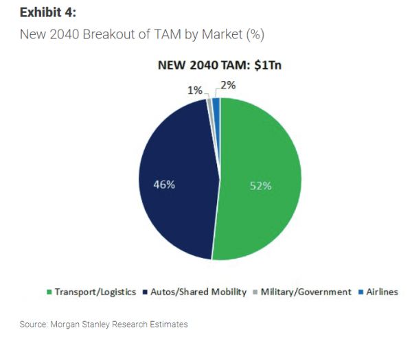 无利不起早,赛道集中爆发与它广阔的市场有关。今年5月,摩根士丹利发布了一份eVTOL行业报告,预测到2040年,以eVTOL为核心的载人(UAM)、货运(RAM)等综合市场规模将突破1万亿美元。德国咨询公司罗兰贝格预测,2050年全球95个主要城市将有9.8万辆飞行汽车投入使用。这些数据既说明市场未来的挖掘空间很大,也让外界意识到,大行业之下还有细分领域的价值。