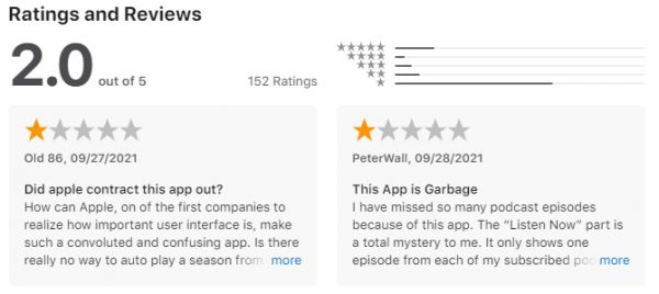 @Old 86:“苹果把这个应用外包了吗,不然它怎么会做出如此复杂又令人困惑 App?不能自动播放下一集,也没有‘最近播放’的菜单,真的很难相信制作播客的公司居然无法制作出有价值的 App。”