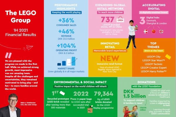 9月28日,丹麦乐高集团公布了2021年上半年财报。