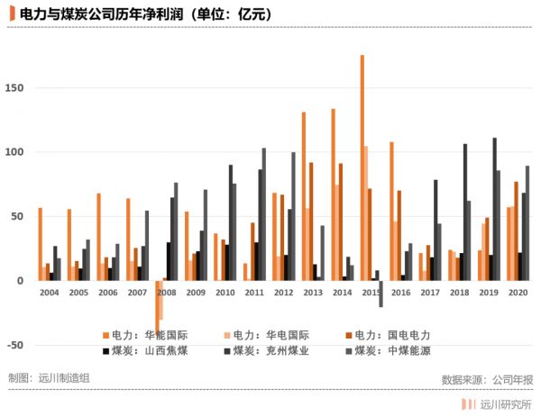 即火电厂的盈利状况,几乎完全依赖于煤炭价格的涨跌周期。换句话说就是: 火电厂发财的时候,往往也是煤炭企业哀鸿遍野的时候;而煤炭企业吃肉的时候,就轮到火电厂吃翔了。