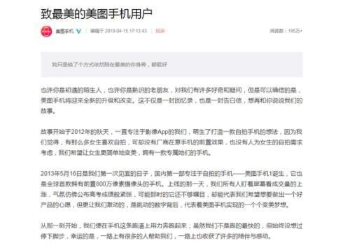 在《致最美的美图手机用户》中,美图手机称“希望让女生更简单地变美,拥有一款专属她们的手机”,并解释做不下去的原因是:“做一台让更多人变美的手机,所以它意味着小众,也意味着体量小,无法降低成本去迎合愈演愈烈的价格战”。