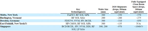 ▲格芯5座晶圆厂产品、晶圆尺寸和产能情况