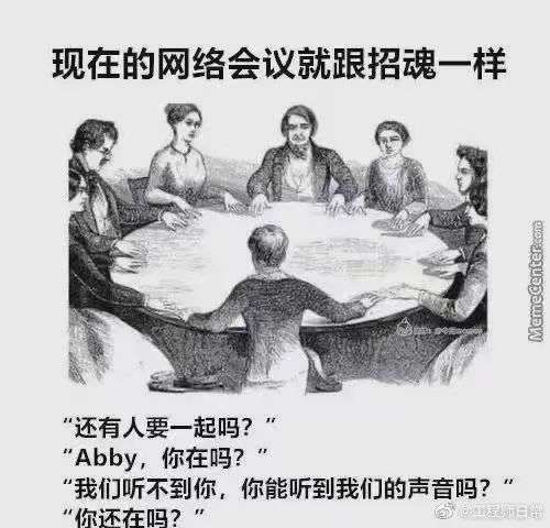 这一问题此前只是在 Zoom 会议期间才被提起,因为各人所处的网络环境和相隔距离不同,直到疫情爆发一年多后的今天,开一场语音或视频会议依然可能是一场折磨。一张网图说,现在上班开会的感觉有点像“招魂”: