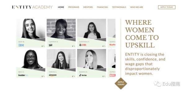 女性科技就业方面,可能是迄今为止最不成熟的——你可以在Entity Academy网站底部找到“就业不保证”,同时提醒学生Entity Academy是对传统教育的补充,而不是替代。