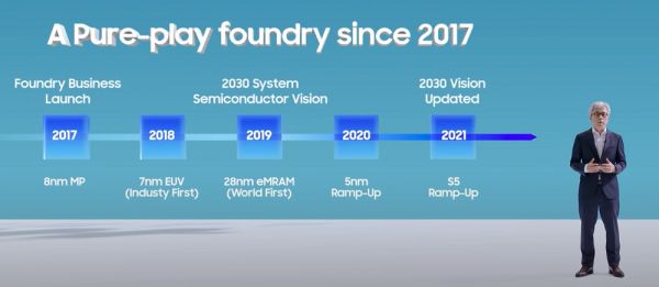 在晶圆代工论坛上,Siyoung Choi谈道:“我们将提高整体产能并引领最先进的技术,同时进一步扩大硅片规模并通过应用继续技术创新。”