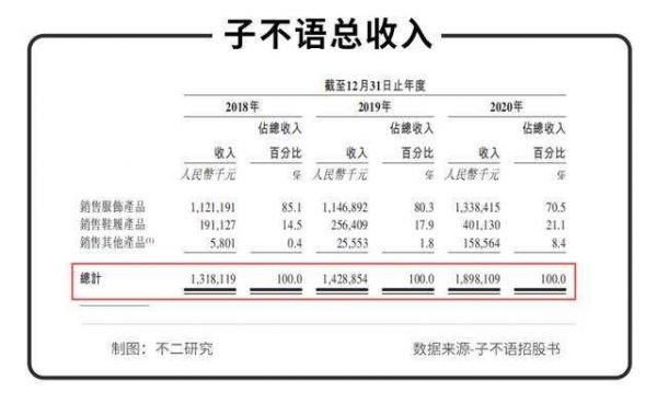 据招股书显示,2018~2020年,子不语营业收入分别为13.18亿元、14.29亿元、18.98亿元,年复合增速约20.00%。