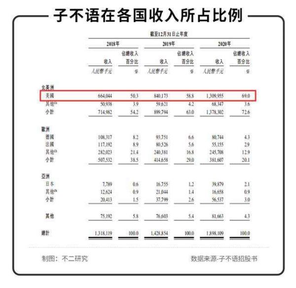 从地区上来看,子不语产品销售全球超过80%的国家及地区的终端客户,但从招股书观察,其主要培养的还是欧美市场,以美国为重中之重。