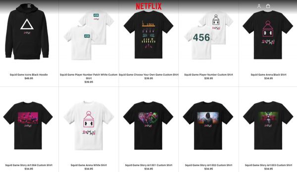 赶上这一波热潮,奈飞顺势在旗下Netflix.shop上推出了服饰产品,主要是一系列T恤衫,包括主人公在剧中的号码456号,以及管理员等相关角色图像。不过,相较于第三方市场上的火爆状态,奈飞的产品上线偏晚,也没有给予“官方”周边太多的宣传扶持。