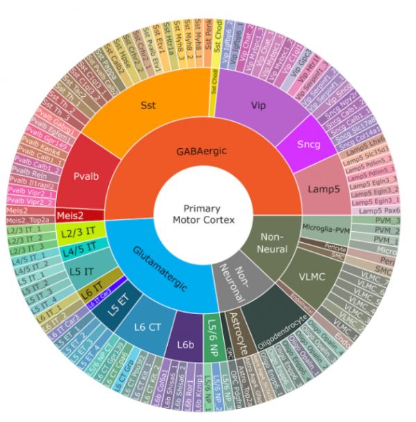 现在,这项雄心勃勃的努力的第一步已经完成,研究人员在分子水平上全面绘制出了哺乳动物初级运动皮层细胞类型的特征图。