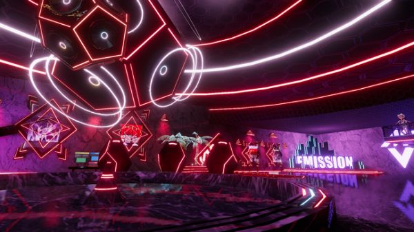 据披露,Virtual Club EMISSION的会场由大厅与舞台层两部分构成。大厅包括中心舞台、吧台和休息区域。中心舞台可以播放3D影像,座位围绕其排列展开。在舞池中玩累的顾客可以在虚拟吧台根据自己喜好制作鸡尾酒,也可以在休息区域小憩。