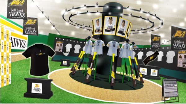 今年3月,棒球队福冈软银HAWKS便和HIKKY合作打造了VRChat上的虚拟周边商店。虚拟商店再现了线下周边商店的外观和内部场景,还邀请了体育比赛解说、前棒球运动员和YouTube网红等进行直播。