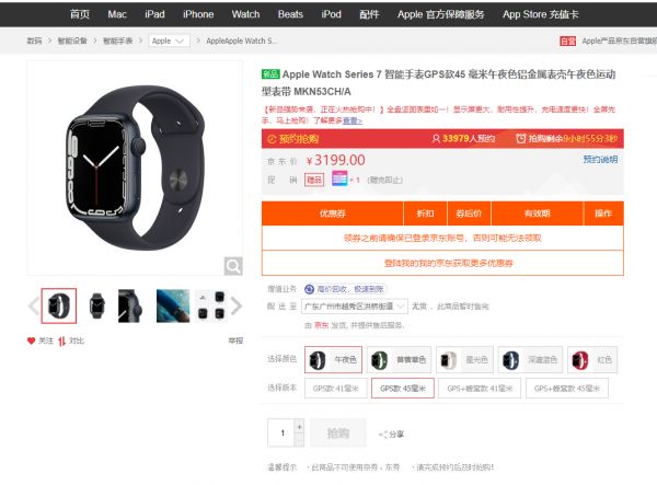 有意思的是,截至发稿前,京东苹果官方授权店的Apple Watch S7预约量只有33979,可以明显感觉到这一代手表的热度远不及之前。