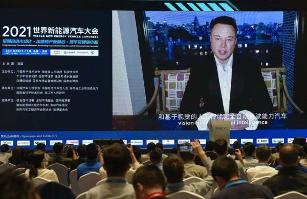 (特斯拉CEO马斯克视频出席2021世界新能源汽车大会)