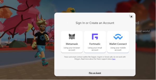 decentraland除了游客模式,正常的角色创建需要先认证Metamask钱包