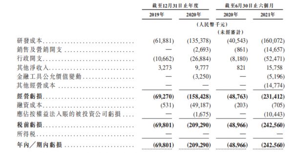 招股书显示,微创医疗机器人在2019年、2020年和2021年上半年的净亏损分别是6980万元,2.09亿元以及2.43亿元,2020年和2021年上半年的净亏损分别同比增长了199.8%和395.4%。