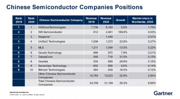 2020年国务院印发的《新时期促进集成电路产业和软件产业高质量发展的若干政策》指出,中国芯片自给率要在2025年达到70%,高增速不言而喻。而Gartner则预测,中国半导体公司在国内市场的份额将有机会突破30%。
