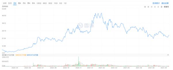 然而,此后小牛电动股价出现长期低于发行价的低迷态势,直至2020年5月才开始出现上升趋势, 2021年2月16日,小牛电动股价达到53.38美元/股高位,市值达到40.72亿美元。