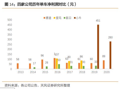 天风证券整理的数据显示,2020年,小牛电动车单车价格由2019年的4928元下降至4063元;单车净利润更是由451元下降至280元,几近腰斩。
