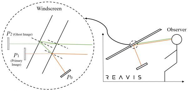 当前HUD渗透率低有多方面的原因,包括了成本较高、安装空间受限、AR显示效果有待提升等。由于车前挡风玻璃有一定厚度,图像经过内外玻璃平面的两次反射,会形成重影。目前普遍的解决方案是通过在车前挡风玻璃之间夹入定制的楔形膜来消除重影。此方案意味着车厂需要为每款搭载HUD的车型开模定制挡风玻璃,这不但提高了装配HUD的成本,也极大的约束了HUD可适用的场景,限制了HUD的普及。