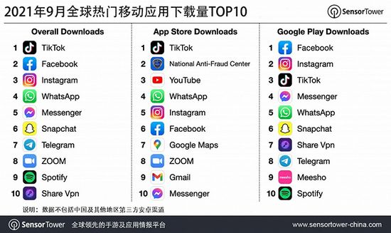 9月全球热门移动应用下载量TOP10:抖音及TikTok蝉联冠军