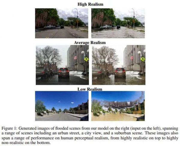 研究人员输入不同位置和建筑类型(如房屋、农场、街道、城市)的图像,形成十多种人工智能合成样式,再请评估人员在真实图像和半生成图像之间进行选择,计算平均错误率。这项工作的最终愿景是创建机器学习架构,根据用户选择的位置生成极端天气下的最逼真图像,包括洪水、山火、热带气旋乃至更多的灾难性事件。