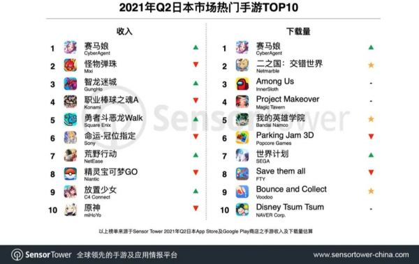 根据美国调查公司Sensor Tower的统计显示,日本手游市场规模2021年1-6月约为97亿美元。尽管增速放缓,但依然占据了手机游戏市场规模的全球前三。