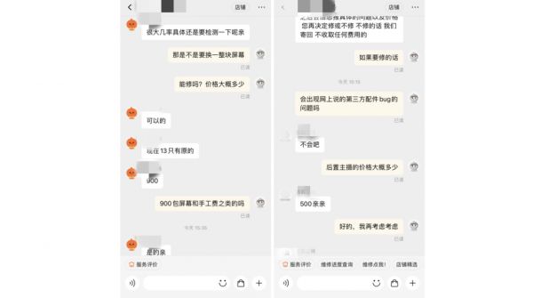 可能是iPhone 13刚开售不久的原因,许多第三方维修厂商还没拿到足够的零部件,当笔者在网店上询问能否修iPhone 13的屏幕时,多个商家给到的答案均是“暂时没货”。不过需要注意,没货指的是没有备用配件,并不代表有了配件后不能修。