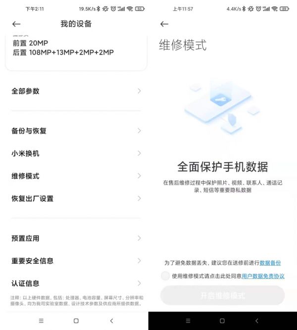 小米、Redmi的用户,打开“我的设备”—“维修模式”即可。