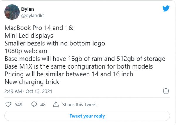 据 Dylandkt 称,基本的 14 英寸和 16 英寸 M1X MacBook Pro 型号将配备 16GB 内存和 512GB 存储空间,这与目前高端的 13 英寸和 16 英寸 MacBook Pro 选项一致。