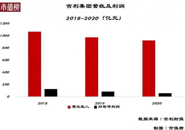 如上图所示,2018年至2020年,吉利集团营收呈现下滑趋势,净利润也在持续降低,主业进入增长瓶颈期。