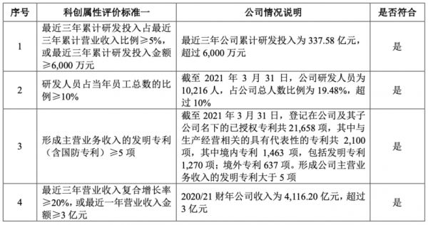 再看评价标准,联想集团选择了“科创属性评价标准一”。联想集团自称符合全部四条标准,但是其中第1条和第4条值得再讨论一下。
