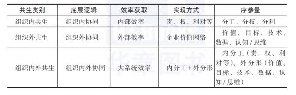 2.组织外共生。组织外共生的目标,是通过组织外部协同增效实现跨边界组织成长。