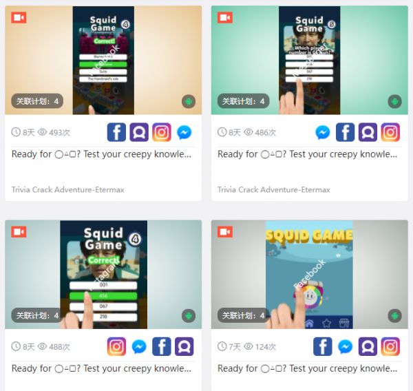在《鱿鱼游戏》火爆全球的情况下, 想要蹭着热度获量的游戏厂商并不少。 究竟厂商想要如何蹭的热度,包括利用《鱿鱼游戏》相关的影视画面,通过剪辑设计的方式融入游戏推广素材。另一种方式则是在原来的产品中,加入《鱿鱼游戏》剧集内的游戏关卡和场景。