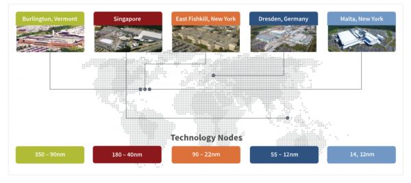 2009年,穆巴达拉以18亿美元收购了新加坡大型晶圆代工厂特许半导体,格芯也收购了AMD在德国德累斯顿的芯片代工业务,随后二者合并,通过不断收购与资本加持的格芯成为一家拥有超10000件专利,年产200万片300毫米晶圆的代工厂(2020年数据),根据官方数据,格芯在美国、德国和新加坡均有设厂,为200多家客户提供芯片代工业务,其中不乏高通、AMD、博通等头部企业。